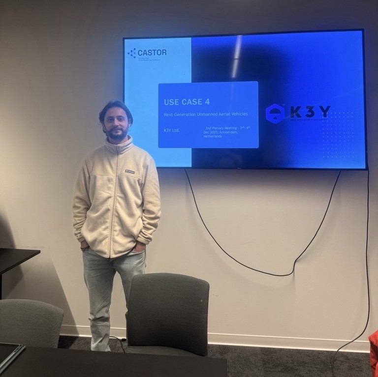 K3Y Ltd was represented by our colleague Ioannis Boukas, who presented the current status of K3Y’s pilot use case within the CASTOR project, titled “Future-Proofing Next-Generation Unmanned Aerial Vehicles Communications towards Critical Infrastructure Sustainability”. The session also included contributions to discussions on integration aspects, interoperability, and overall use-case testbed alignment.